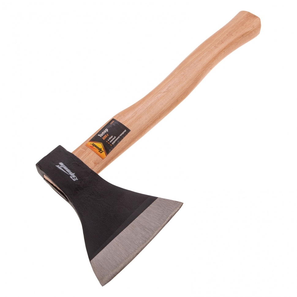 Кованый топор Sparta 21610 с рабочей частью весом 800 г, в сборе с деревянным топорищем, пригодится для решения несложных хозяйственных задач. Им можно рубить ветки, дрова и т.д. Топор оснащен полукруглой режущей кромкой, облегчающей выполнение поставленных задач. Топор изготовлен из стали 45 методом свободной ковки, поэтому обладает необходимыми прочностными характеристиками. Режущая кромка закалена до оптимальной твердости 50 HRC, за счет чего отличается износостойкостью и долго сохраняет остроту. Деревянное топорище покрыто лаком для предотвращения рассыхания. Небольшой вес полотна 800 г снижает усталость рук при продолжительной работе.Топор компактен за счет небольшой рукоятки 380 мм, поэтому его удобно транспортировать.