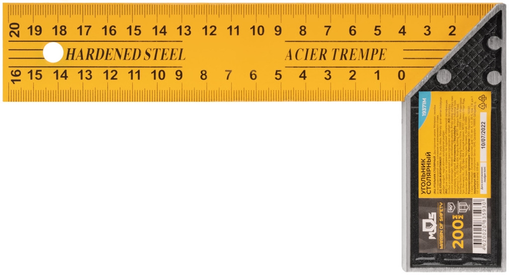 Угольник столярный, двусторонняя шкала, 200 мм