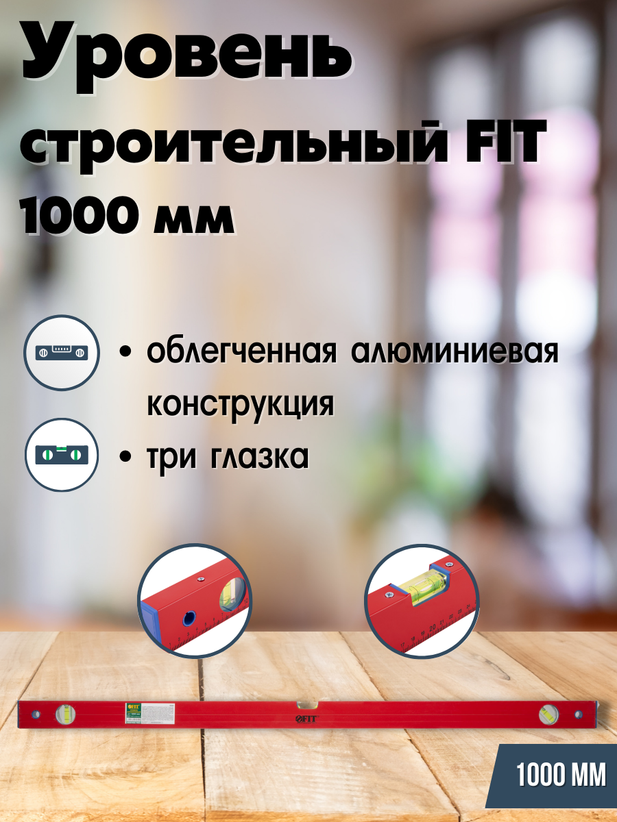 Уровень "Стандарт", 3 глазка, красный корпус, фрезерованная рабочая грань, шкала 1000 мм Материал: алюминий