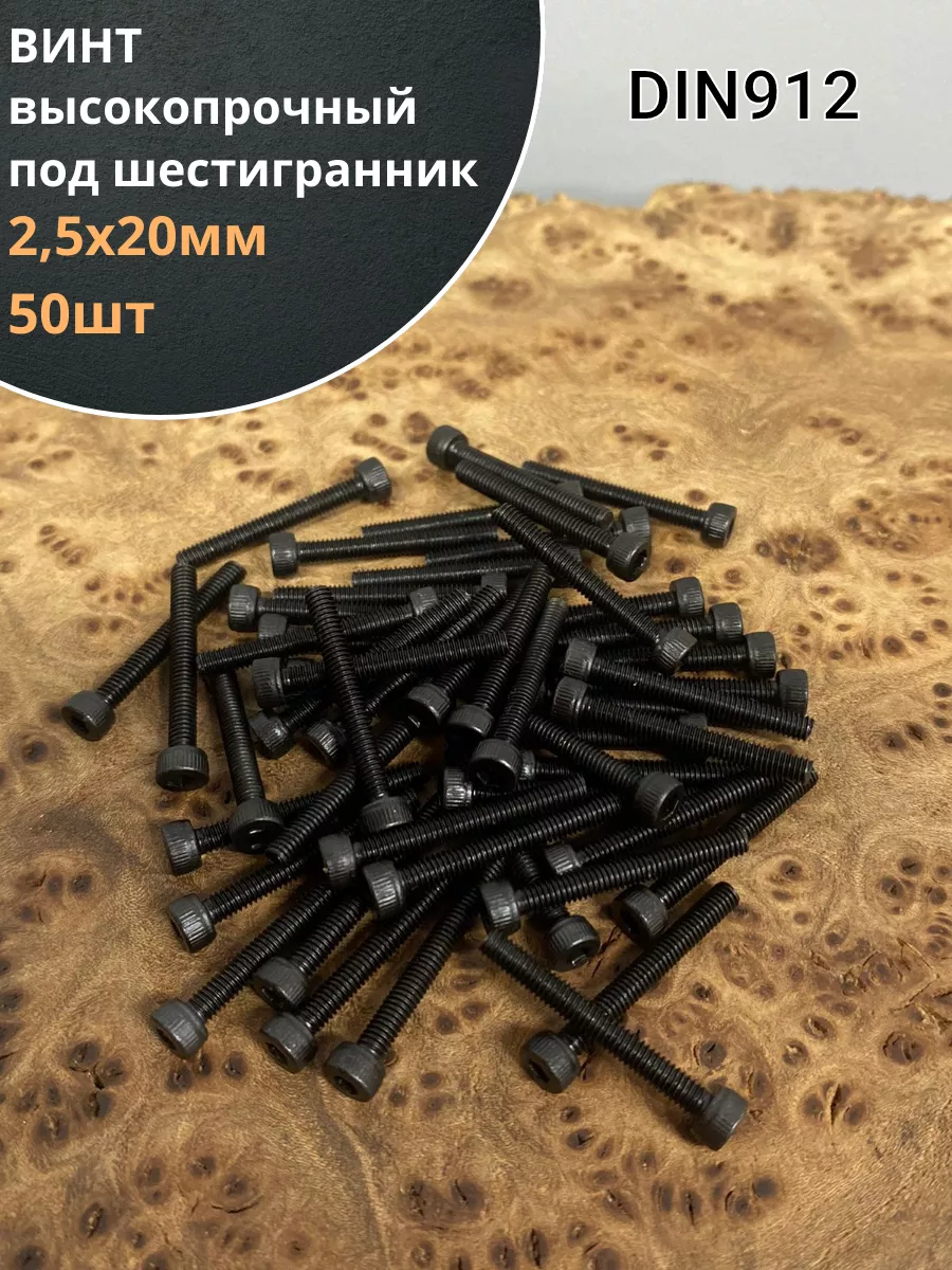 Винт высокопрочный ПР М2,5х20 мм к.п.12.9 черный DIN912, 50 шт.