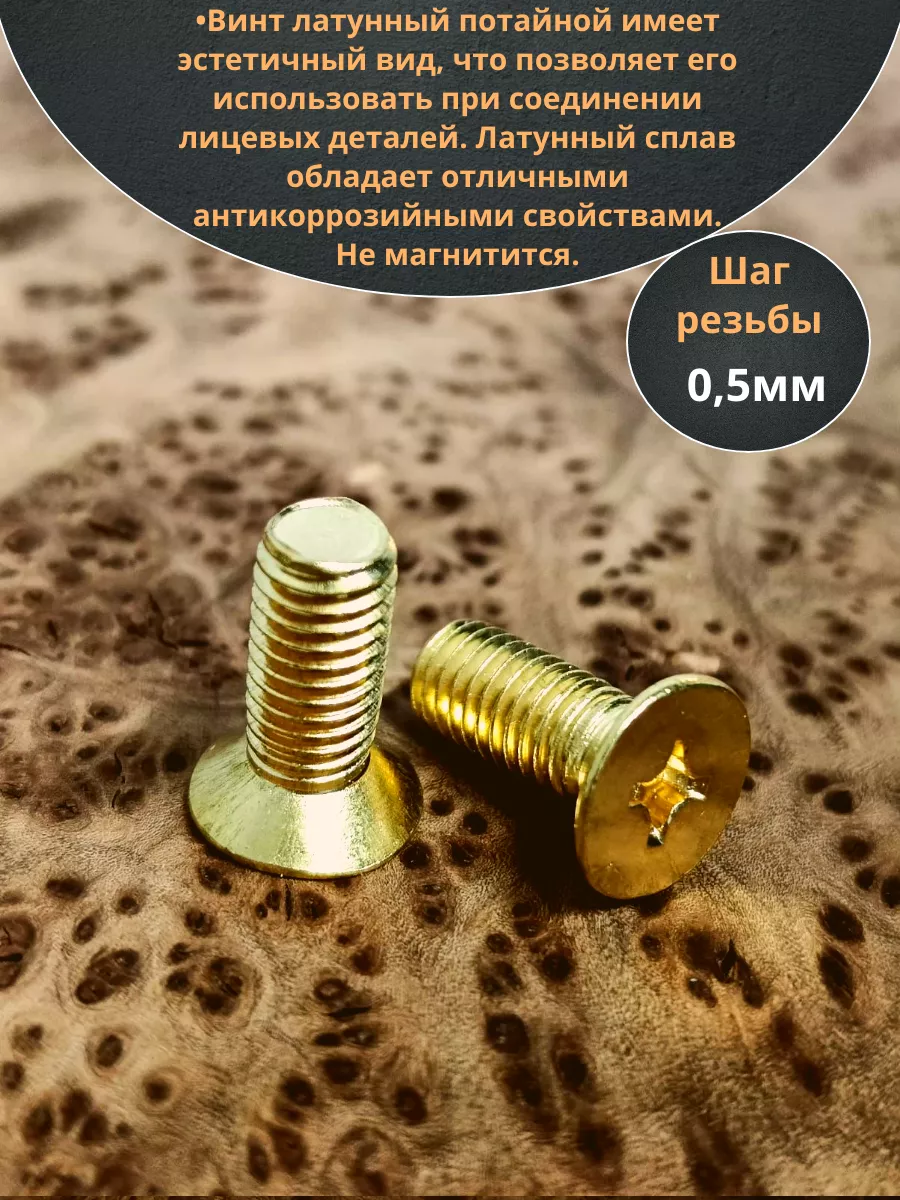 Винт 5х20 латунный потайной DIN965,10 шт