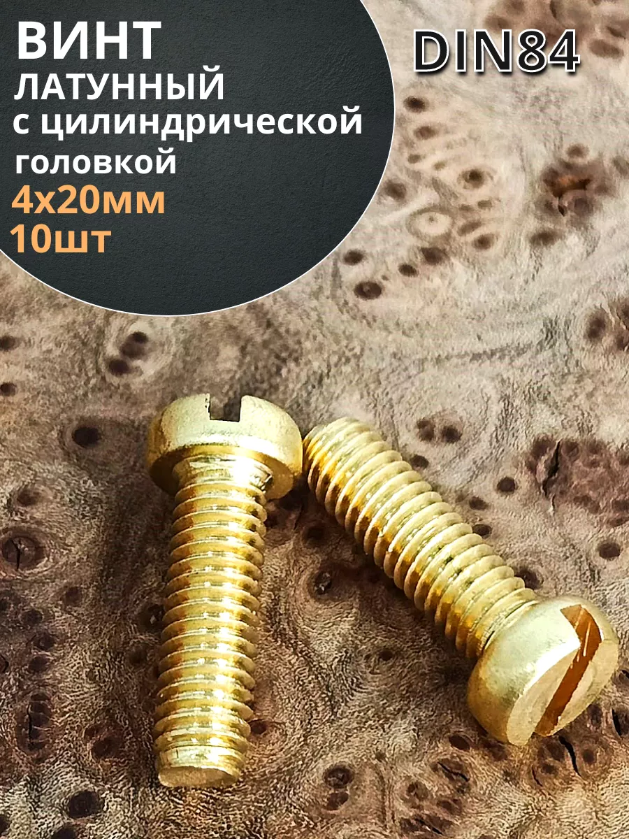 Винт 4х20 латунный с цилиндрической головкой DIN84,10 шт