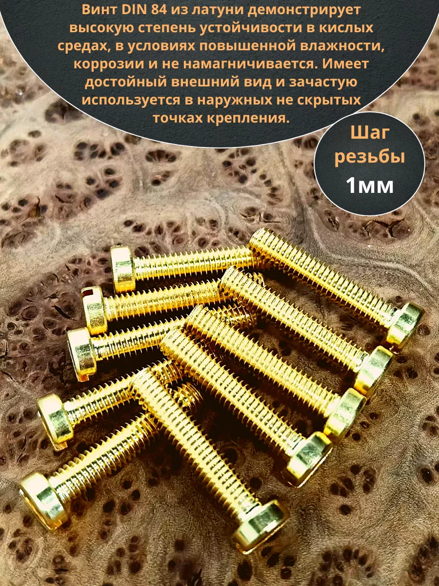Винт 6х25 латунный с цилиндрической головкой DIN84,10 шт