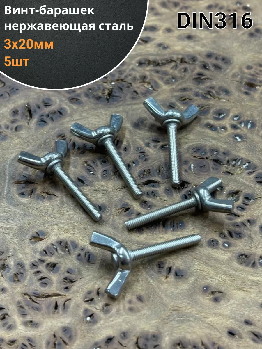 | Винт-барашек М3х20 мм , нержавеющая сталь DIN 316 (5 шт.) | вб320ф5 | 1 шт. |