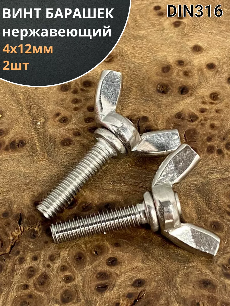 Винт-барашек М4х12 мм , нержавеющая сталь DIN 316 (2 шт.)