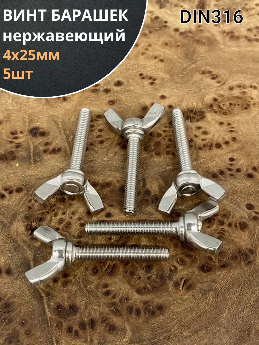 Винт-барашек М4х25 мм , нержавеющая сталь DIN 316 (5 шт.) вб425ф5 1 шт.