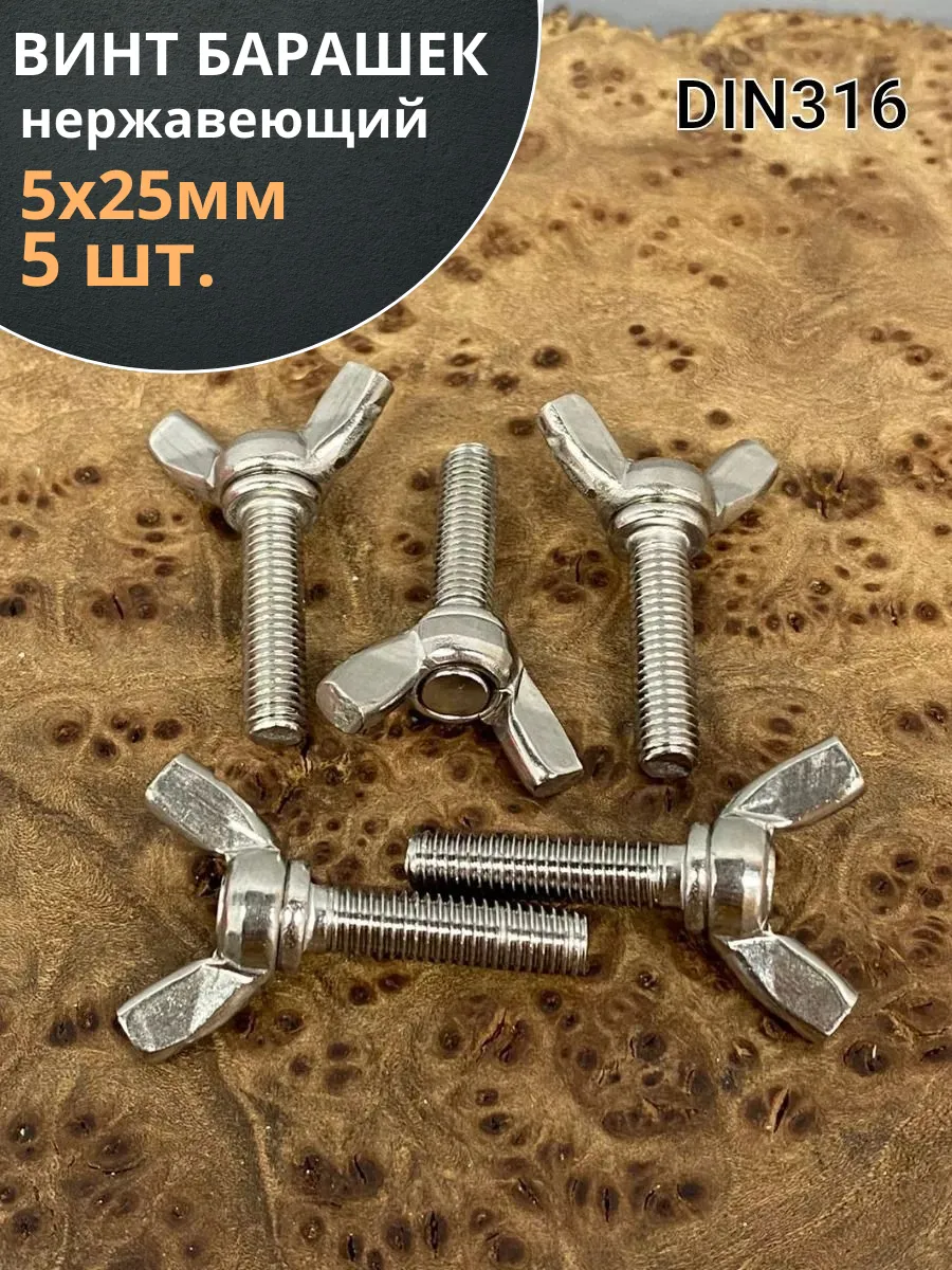 Винт-барашек М5х25 мм ,нержавеющая сталь DIN 316 (5 шт.)