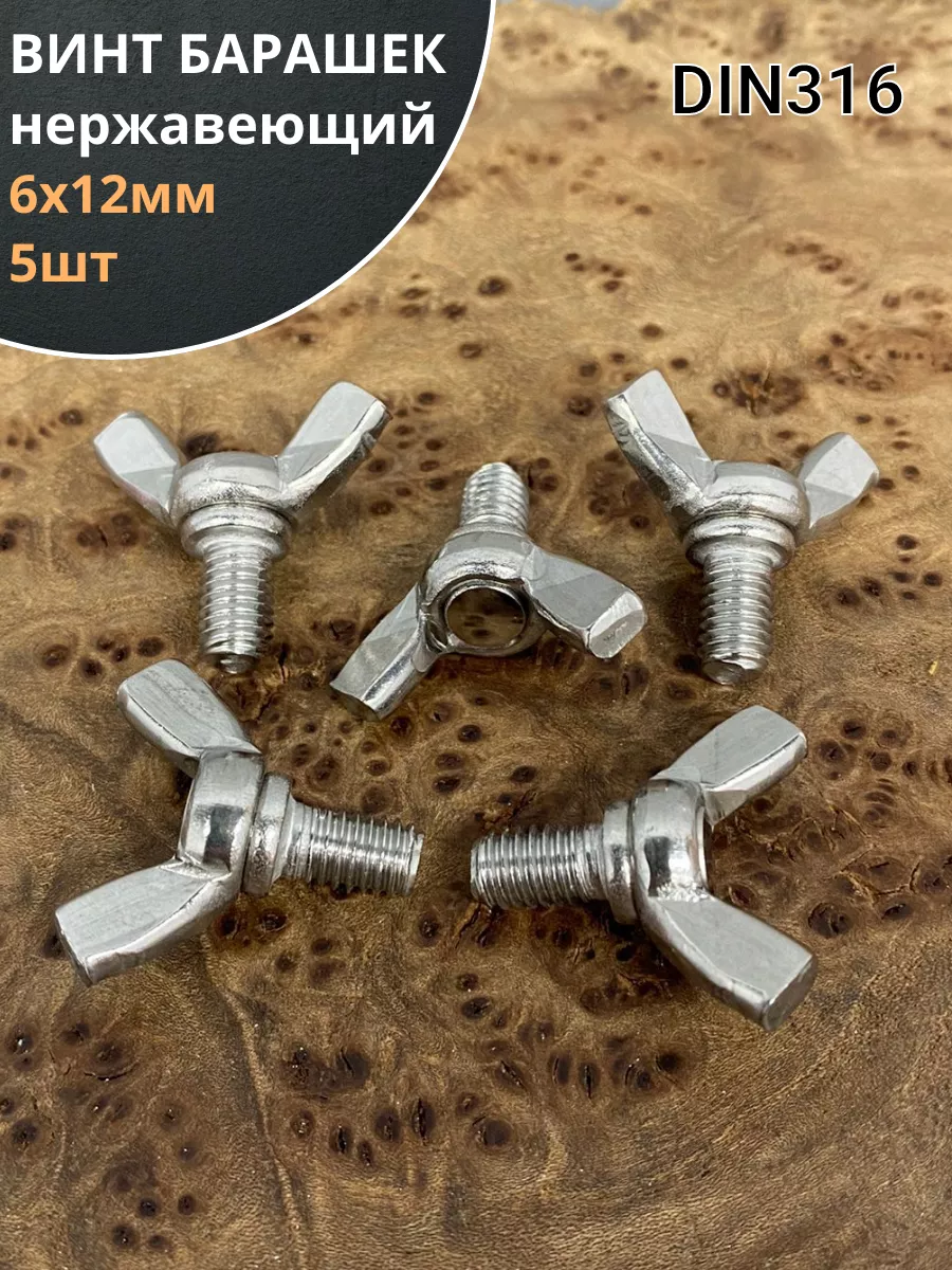 Винт-барашек М6х12 мм , нержавеющая сталь DIN 316 (5 шт.)
