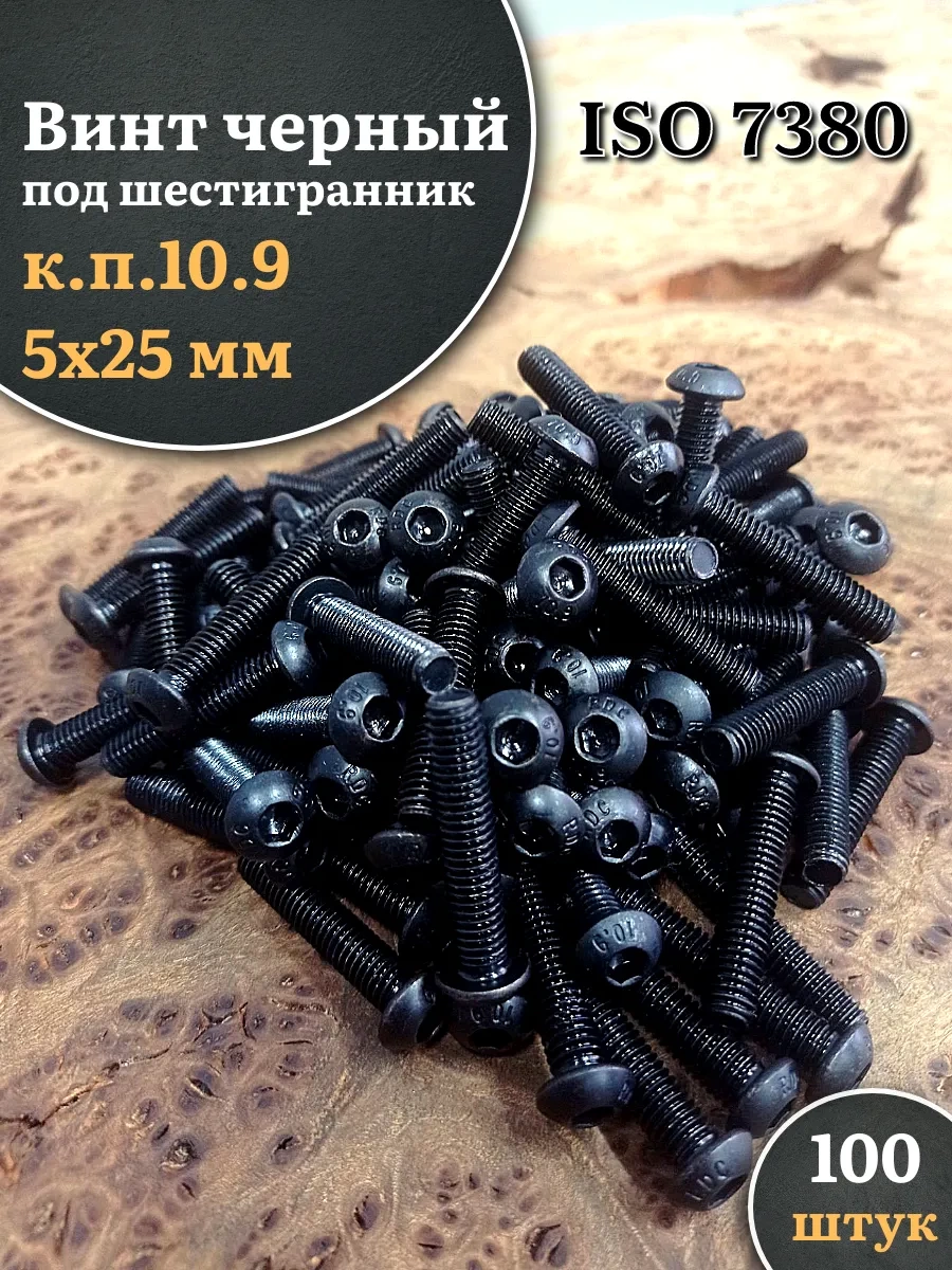 | Винт чёрный М5х25 ISO 7380 под шестигранник к.п.10.9, 100 шт. | 00-00000609ф100 | 1 шт. |