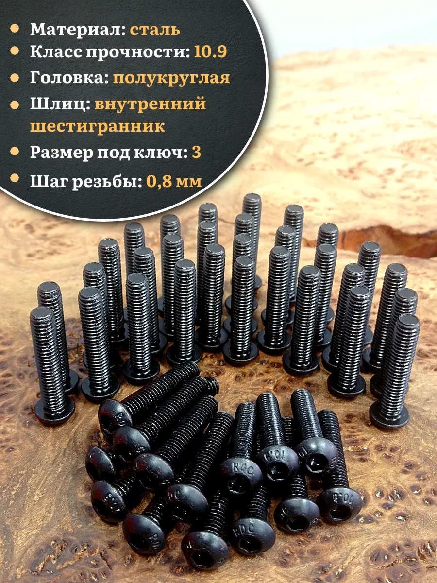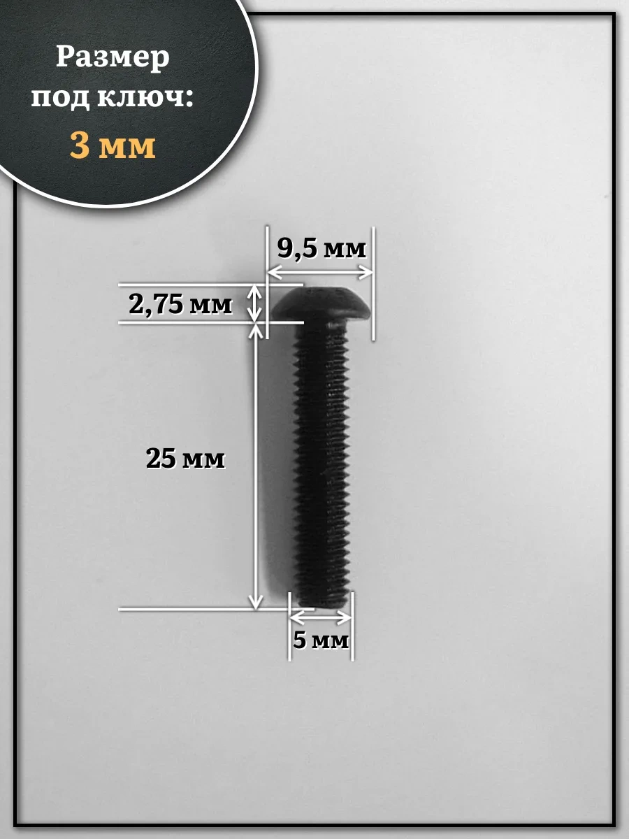 | Винт чёрный М5х25 ISO 7380 под шестигранник к.п.10.9, 10 шт. | 00-00000609ф10 | 1 шт. |