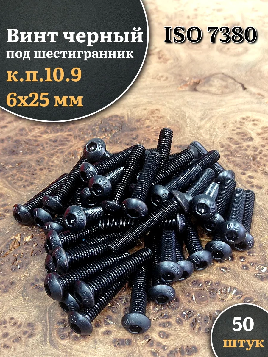 | Винт чёрный М6х25 ISO 7380 под шестигранник к.п.10.9, 50 шт. | 00-00004443ф50 | 1 шт. |