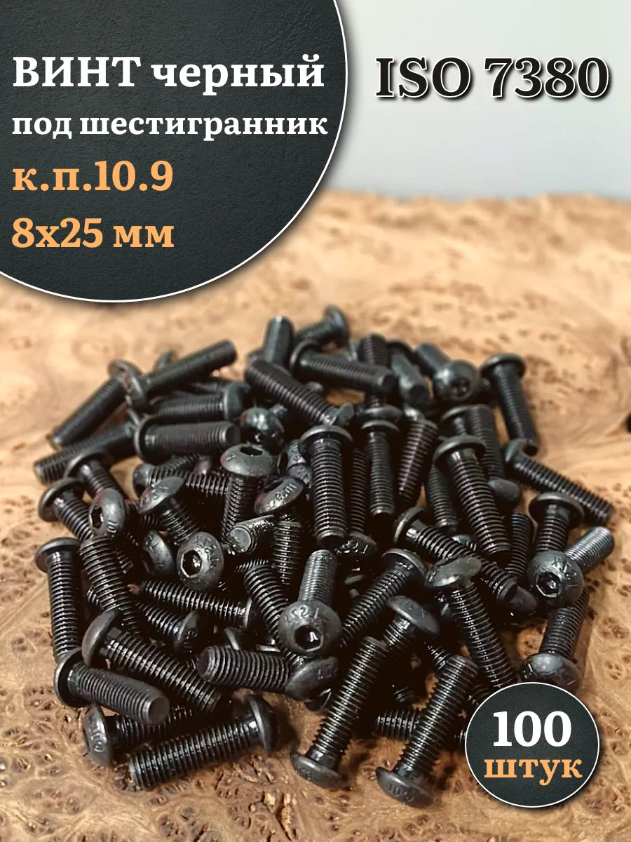 Винт чёрный М8х25 ISO 7380 под шестигранник к.п.10.9, 100 шт.