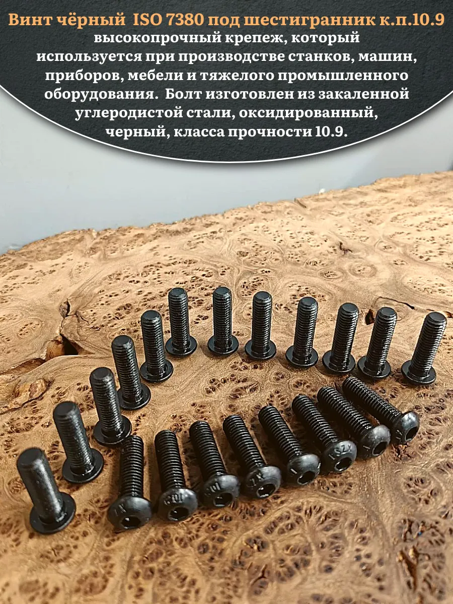 Винт чёрный М8х25 ISO 7380 под шестигранник к.п.10.9, 20 шт.