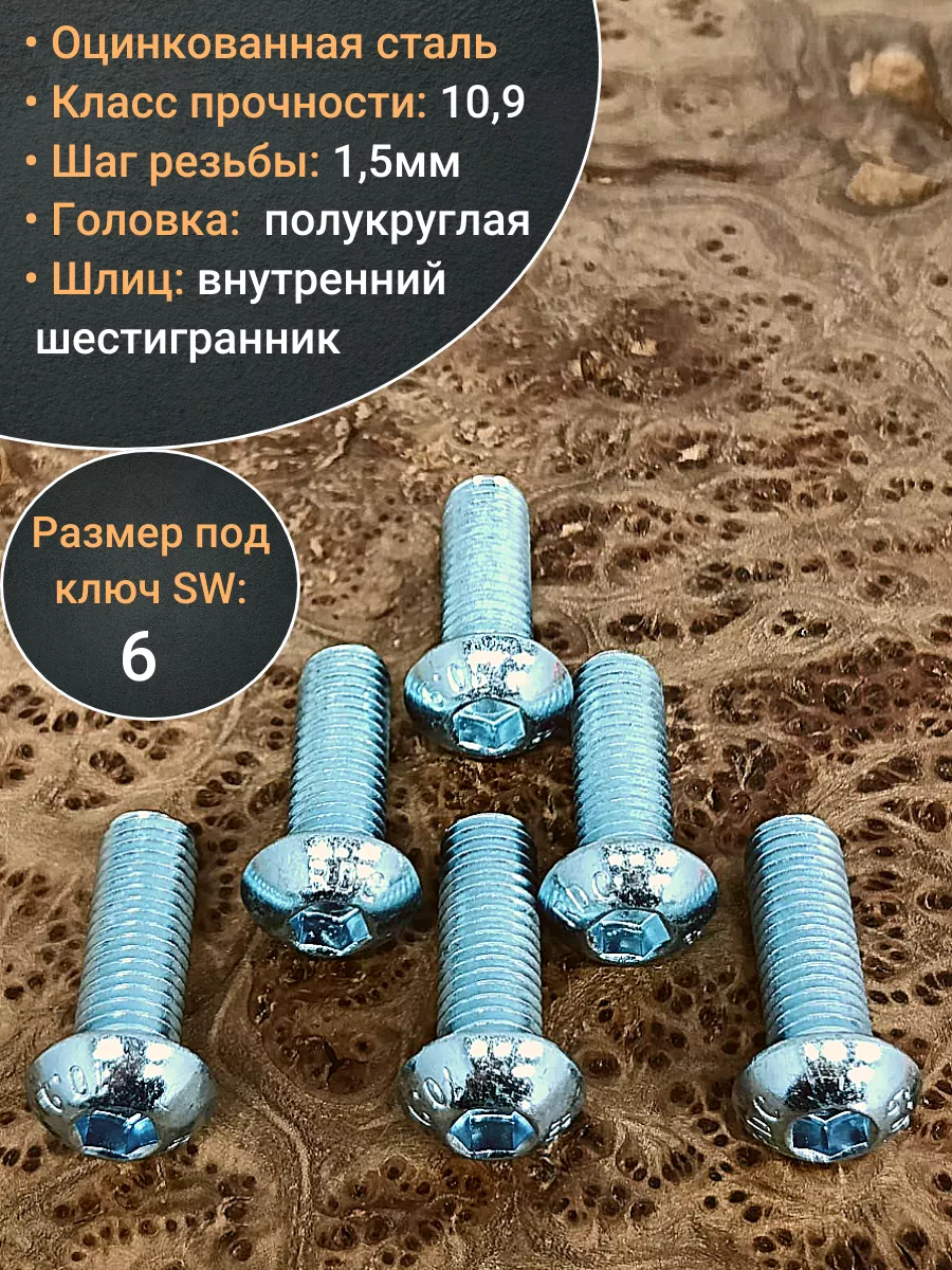 Винт М10х20 с внутренним шестигранником ОЦ 7380к.п.10.9,10шт