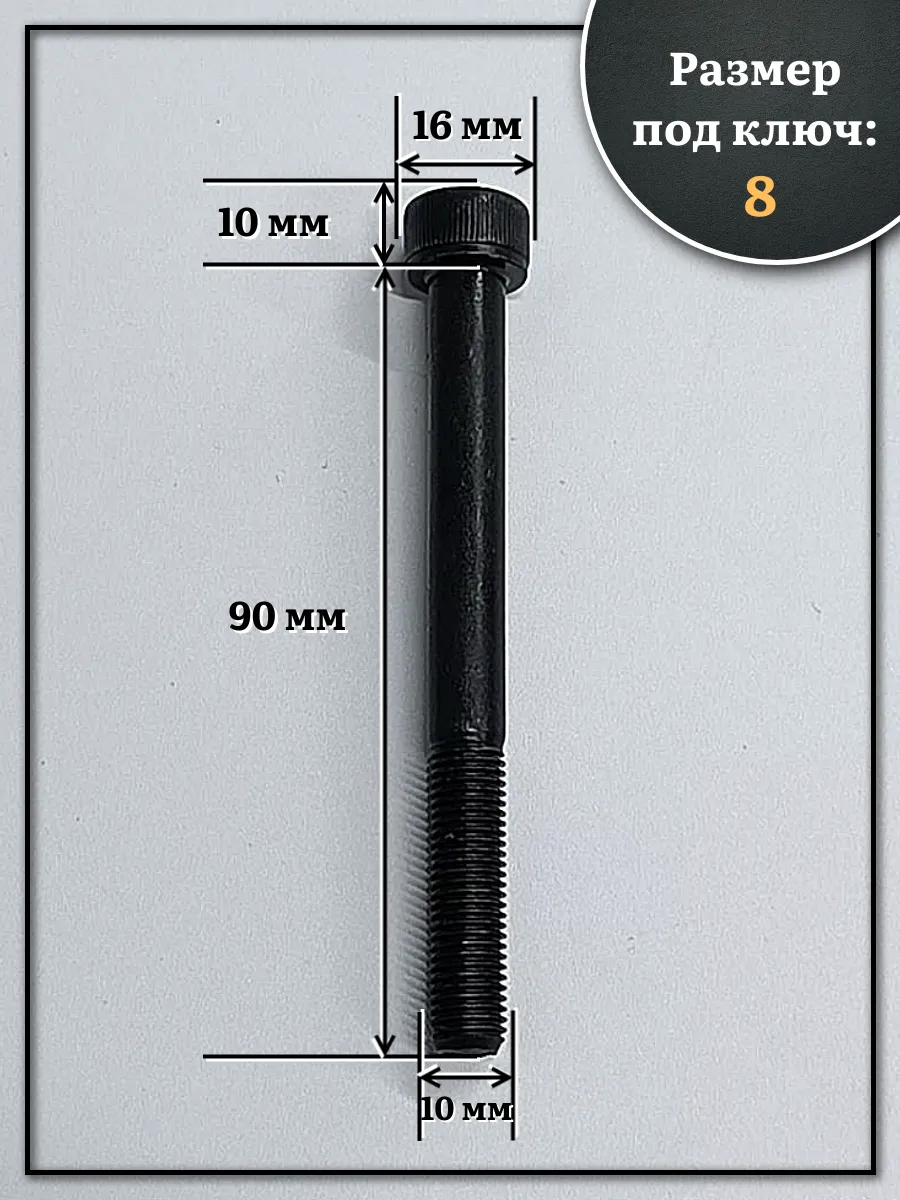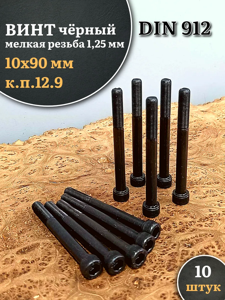 Винт мелкая резьба чёрный к.п.12.9 10х90х1,25 DIN912, 10 шт.