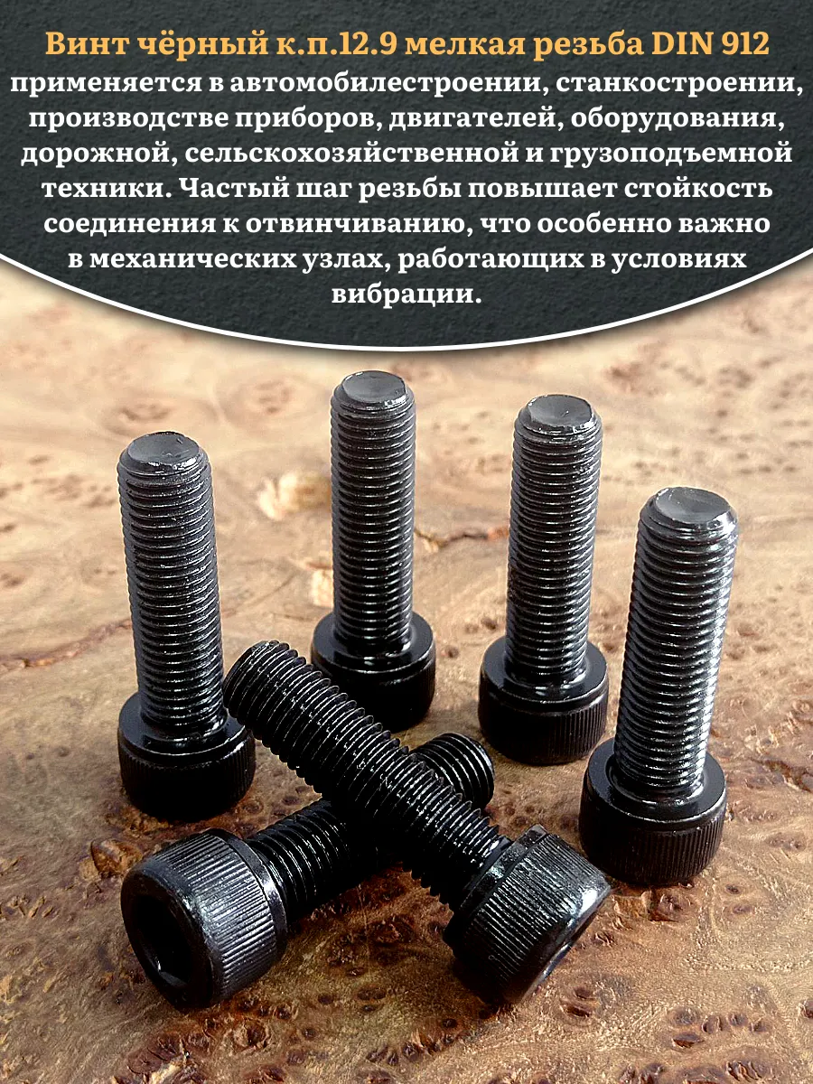 Винт мелкая резьба чёрный к.п.12.9 12х30х1,25 DIN912, 10 шт.