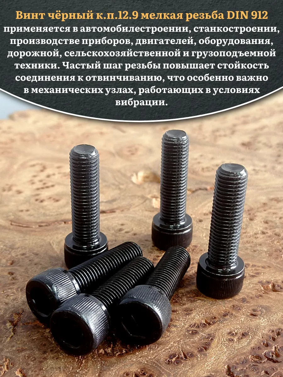 Винт мелкая резьба чёрный к.п.12.9 12х30х1,5 DIN912, 10 шт.