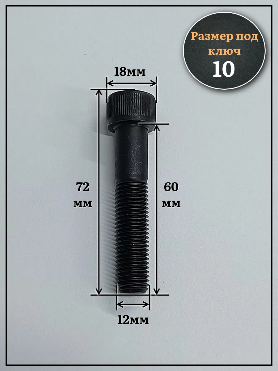 Винт мелкая резьба чёрный к.п.12.9 12х60х1,5 DIN912, 10 шт.