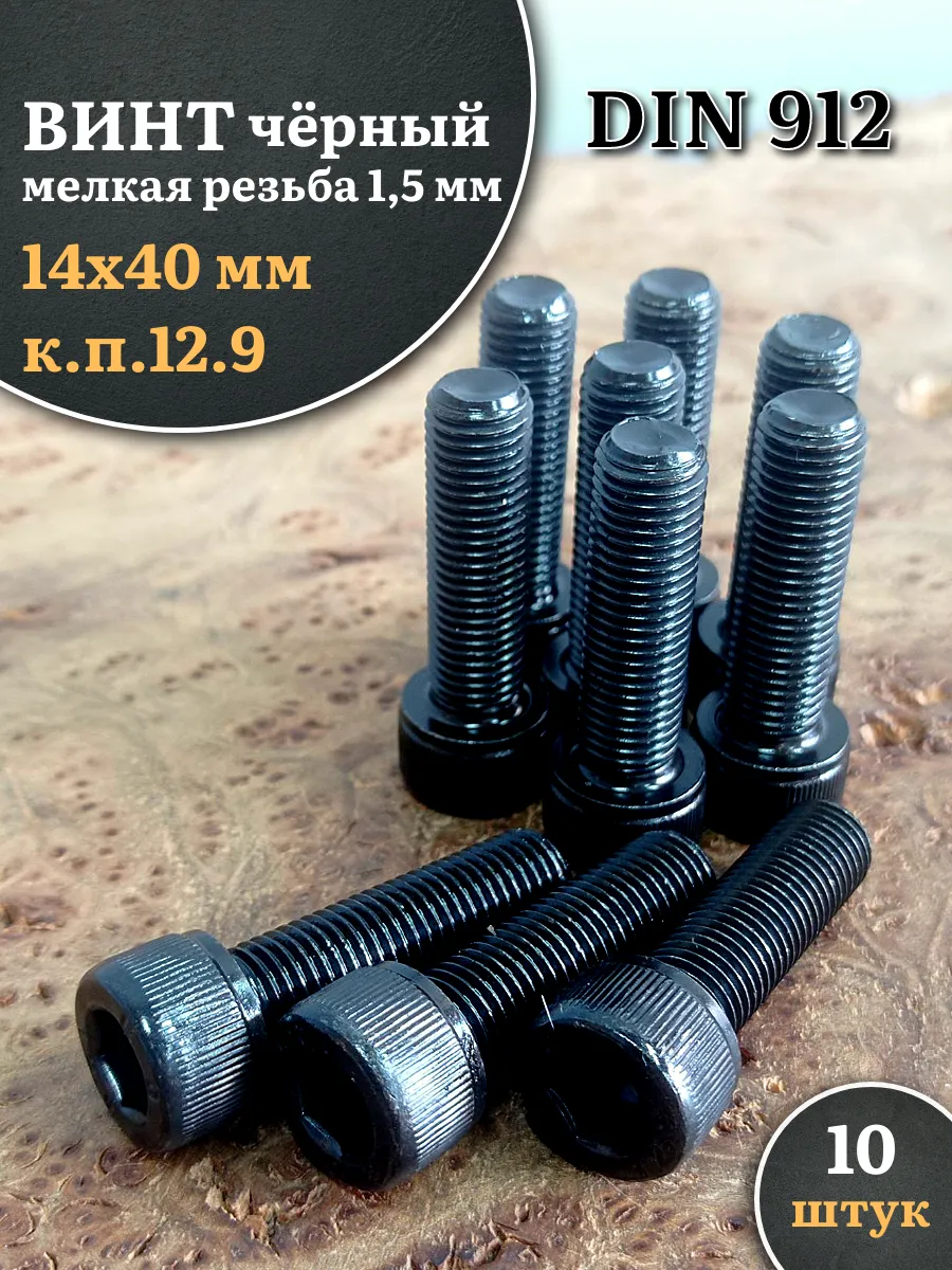 Винт мелкая резьба чёрный к.п.12.9 14х40х1,5 DIN912, 10 шт.