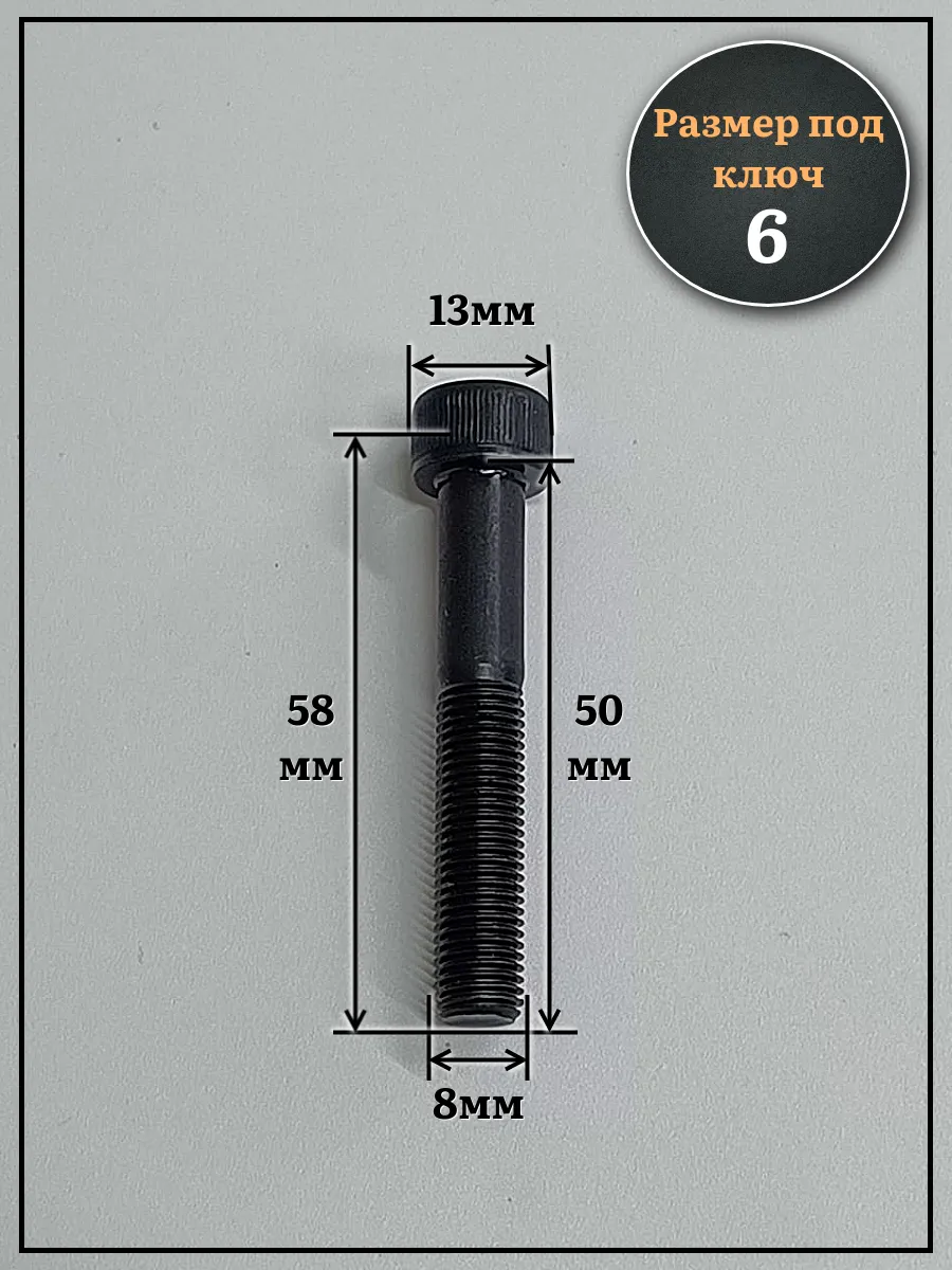 Винт мелкая резьба чёрный к.п.12.9 8х50х1 DIN912, 10 шт.