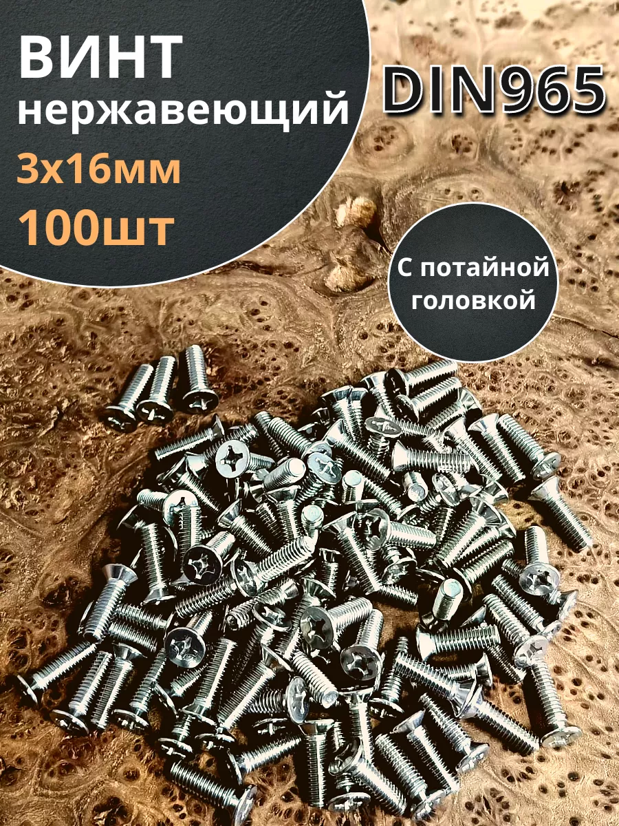 Винт нержавеющий 3х16 мм DIN 965 с потайной головкой ,100 шт