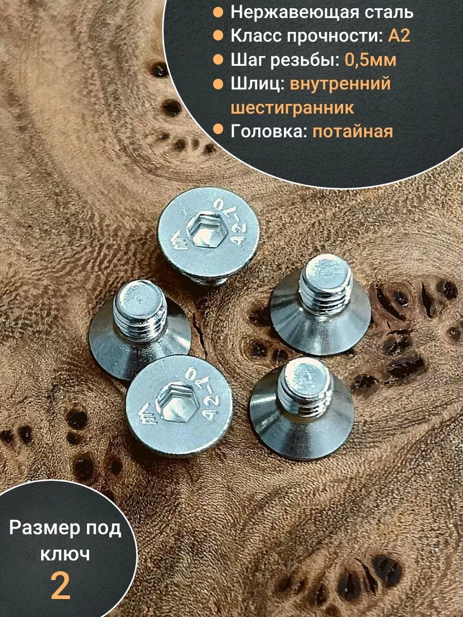 Винт нержавеющий 3х6 потайной под шестигранник DIN7991, 10шт