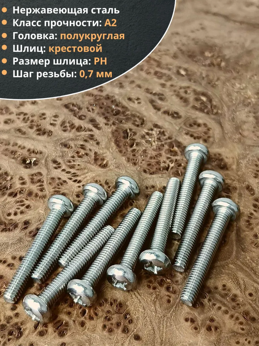 Винт образует разъемное соединение путем ввинчивания в резьбовое отверстие, соответствующее длине и диаметру резьбы стержня. Под его цилиндрическую головку с полусферой подкладывается соответствующая условиям монтажа нержавеющая шайба – обычная или стопорящая. Крестообразный шлиц PH позволяет точно позиционировать крепеж при ввинчивании отверткой. Винты из нержавейки А2 (пищевая аустенитная сталь AISI 304 с содержанием хрома не менее 12%) проявляют стойкость к ржавлению в обычных условиях, слабоагрессивным средах и при высокой влажности. Они не окисляются, гигиеничны, не проявляют магнитные свойства и сохраняют эстетичный вид, благодаря чему широко востребованы при сборке приборов, электротехники, компьютеров и оборудования для пищевой отрасти и медицины. Винт с полукруглой головкой (нержавеющий) DIN 7985 применяется для привинчивания к стальному основанию плоских деталей, навесных элементов и листовых материалов из стали и пластмассы.