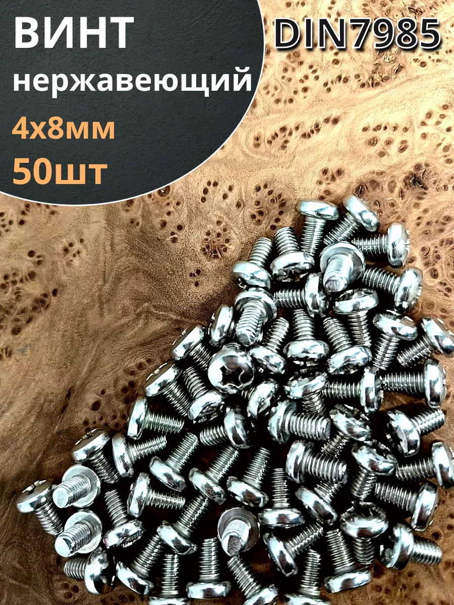 Винт нержавеющий 4х8 мм РН DIN7985, 50 шт.