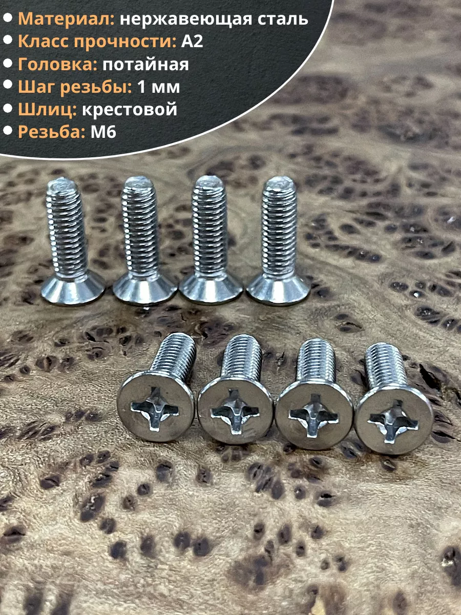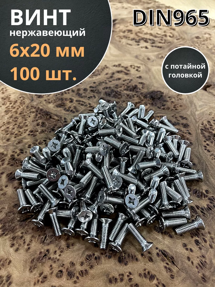 Винт нержавеющий 6х20 мм DIN 965 с потайной головкой ,100 шт