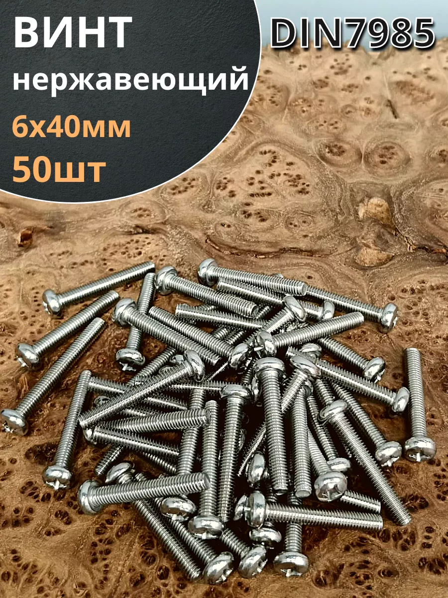 Винт нержавеющий 6х40 мм РН DIN7985, 50 шт.