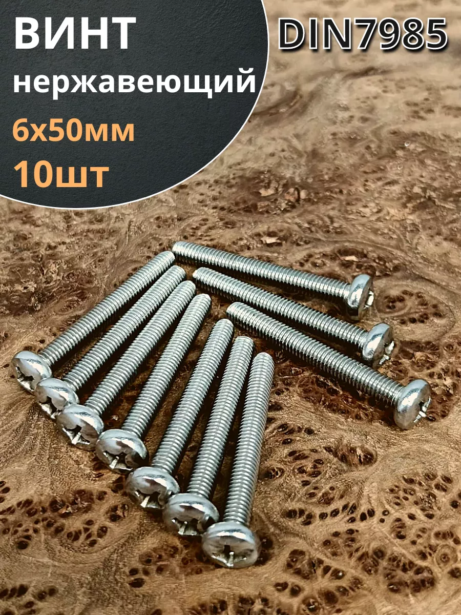 Винт нержавеющий 6х50 мм РН DIN7985, 10 шт.