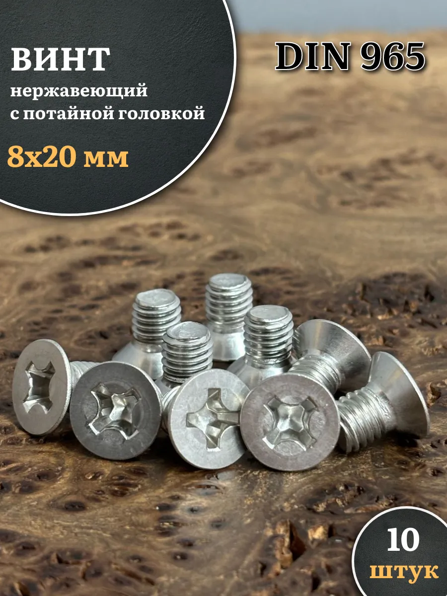 Винт нержавеющий 8х20 мм DIN965 с потайной головкой ,10 шт