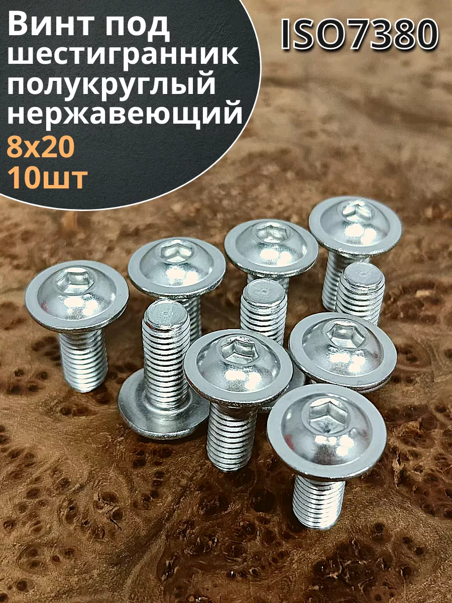 Винт нержавеющий под шестигранник 8х20 мм 7380 ,10 шт.