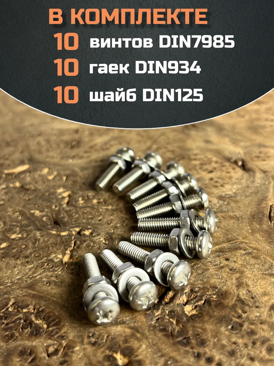 Винт нержавеющий с гайкой и шайбой 5х20 мм DIN7985, 10 шт.