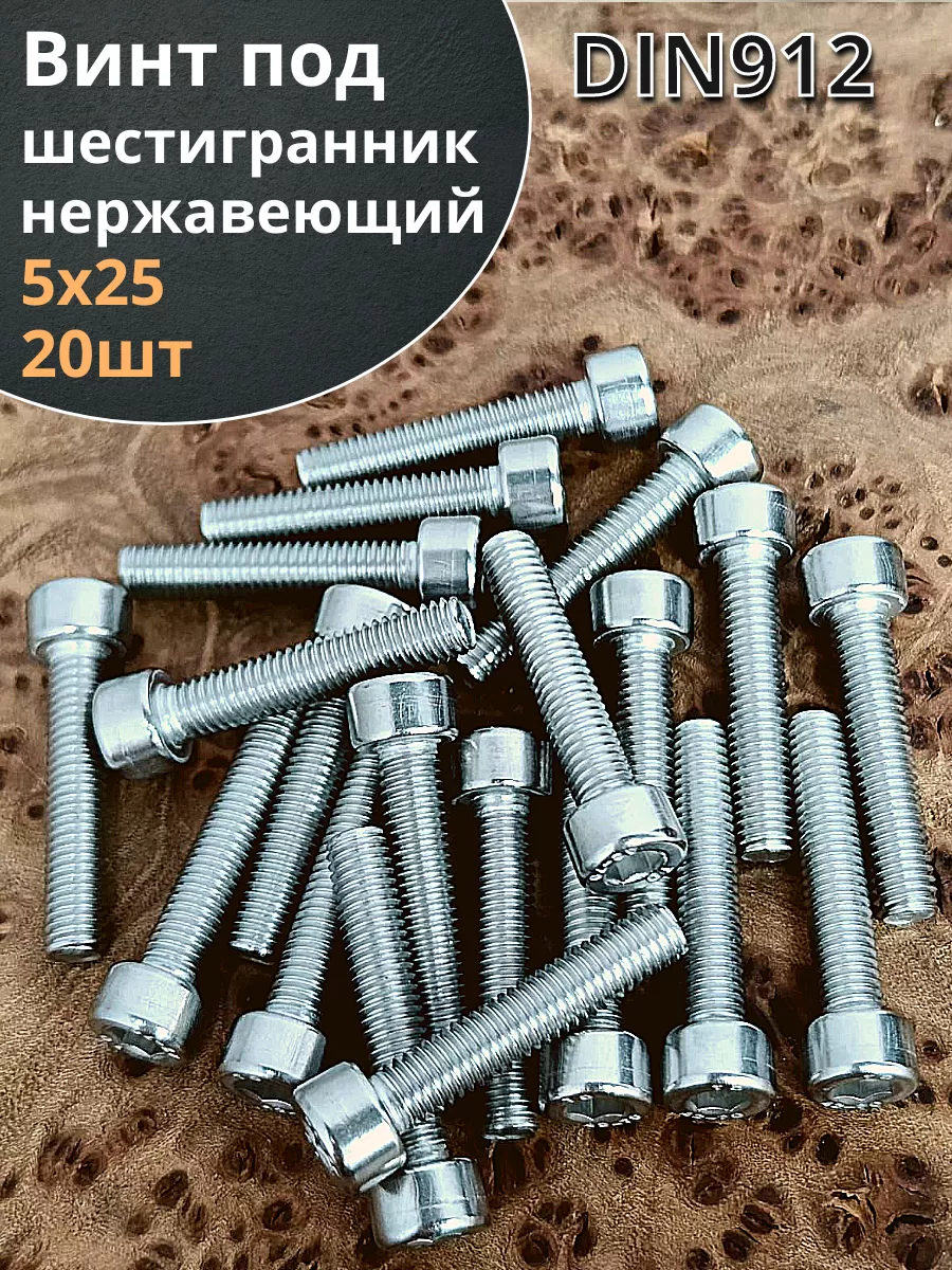 Винт нержавеющий шестигранник М5х25, DIN 912,20 шт