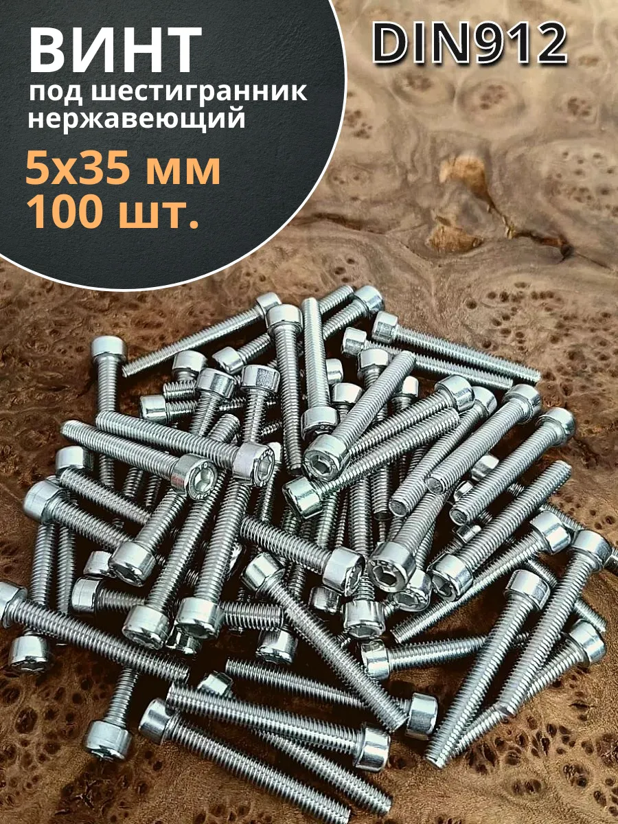Винт нержавеющий шестигранник М5х35, DIN 912,100 шт