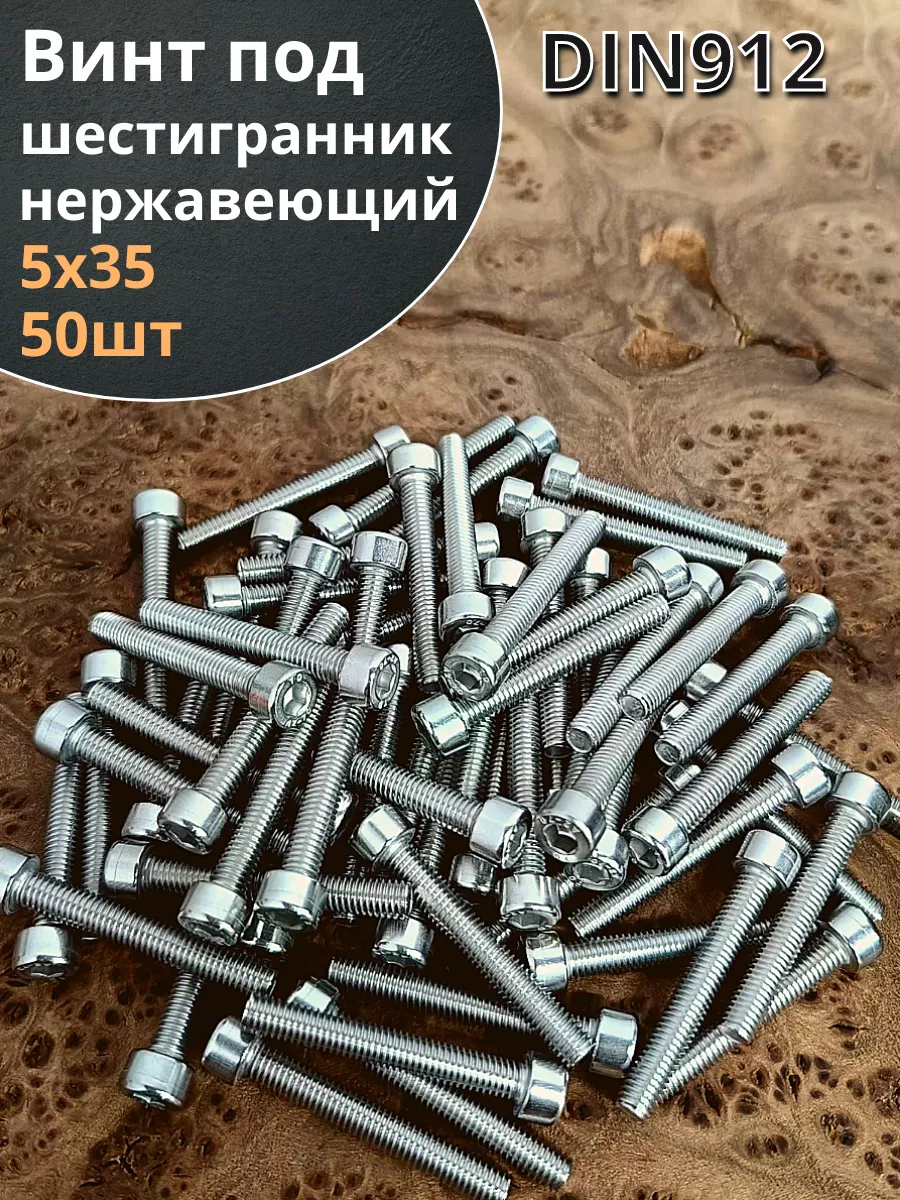Винт нержавеющий шестигранник М5х35, DIN 912,50 шт