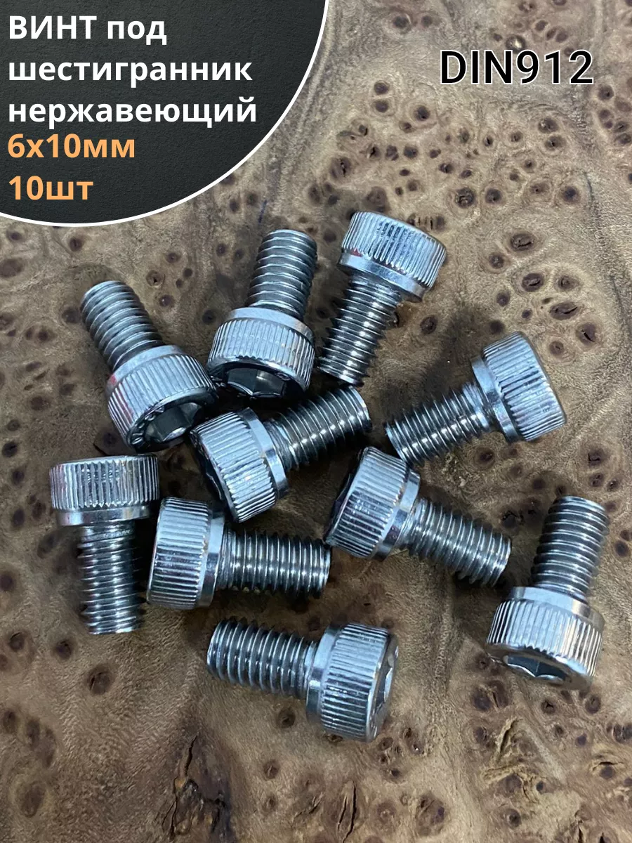 Винт нержавеющий шестигранник М6х10, DIN 912, 10 шт