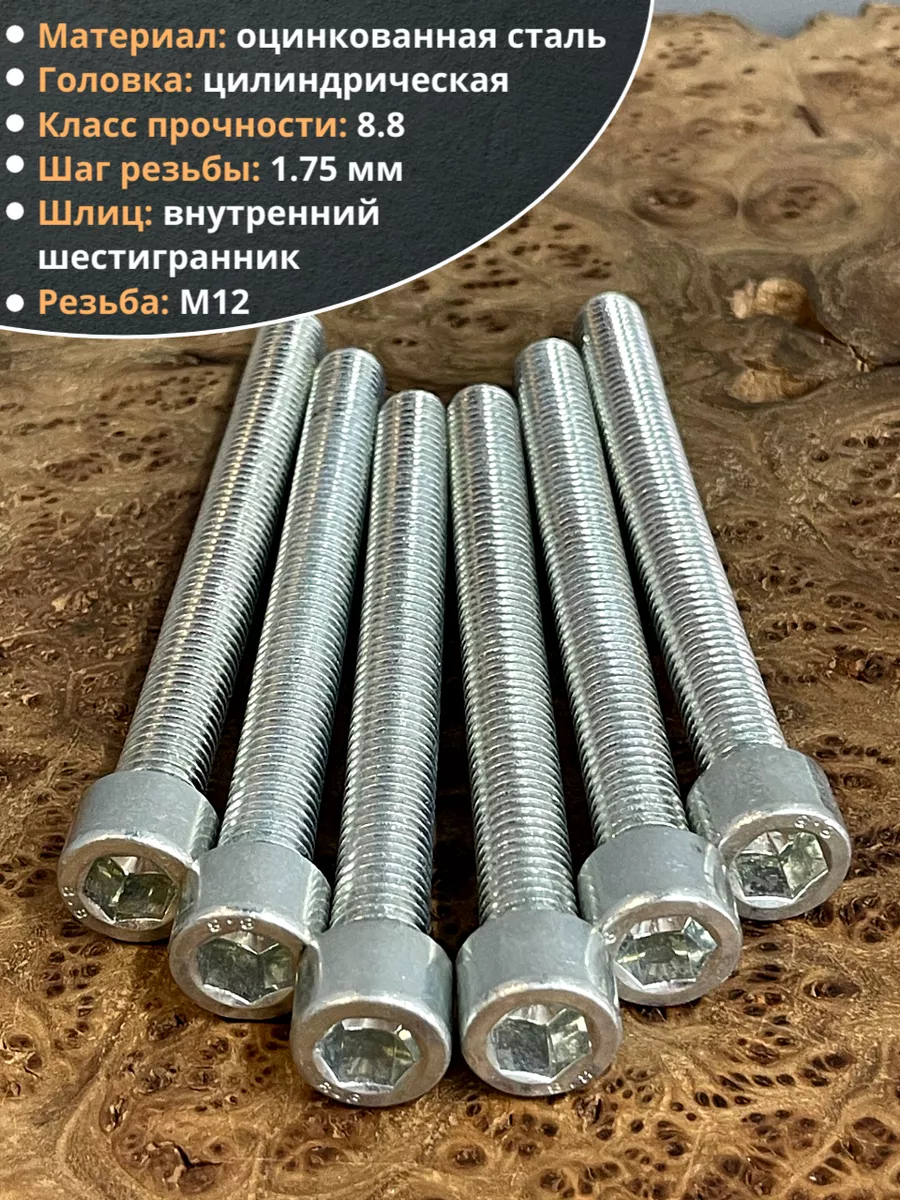 Винт под шестигранник ПР 12х90 мм ОЦ к.п.8.8 DIN912, 10 шт.