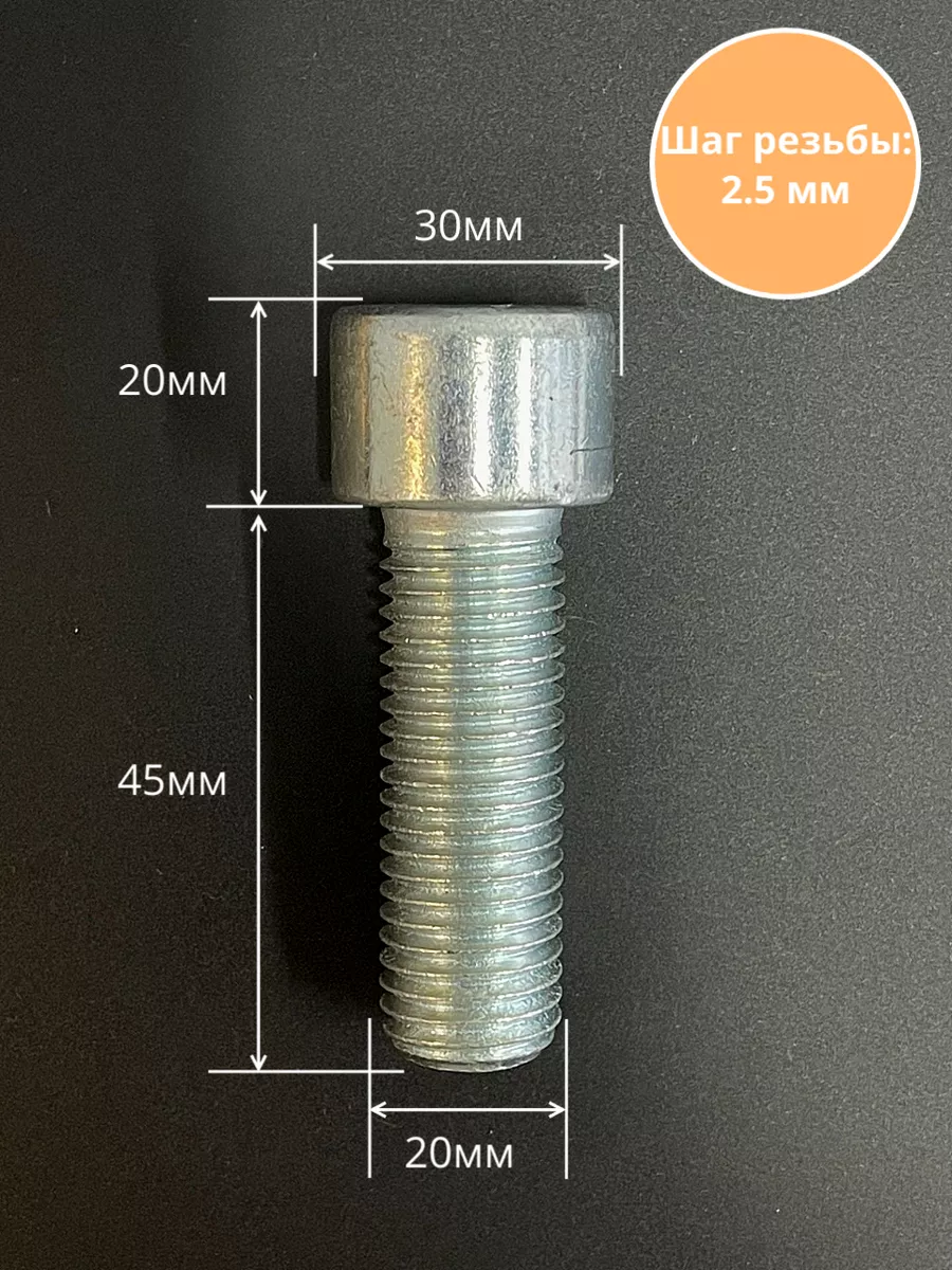 Винт под шестигранник ПР 20х45 мм ОЦ к.п.8.8 DIN912, 2 шт.