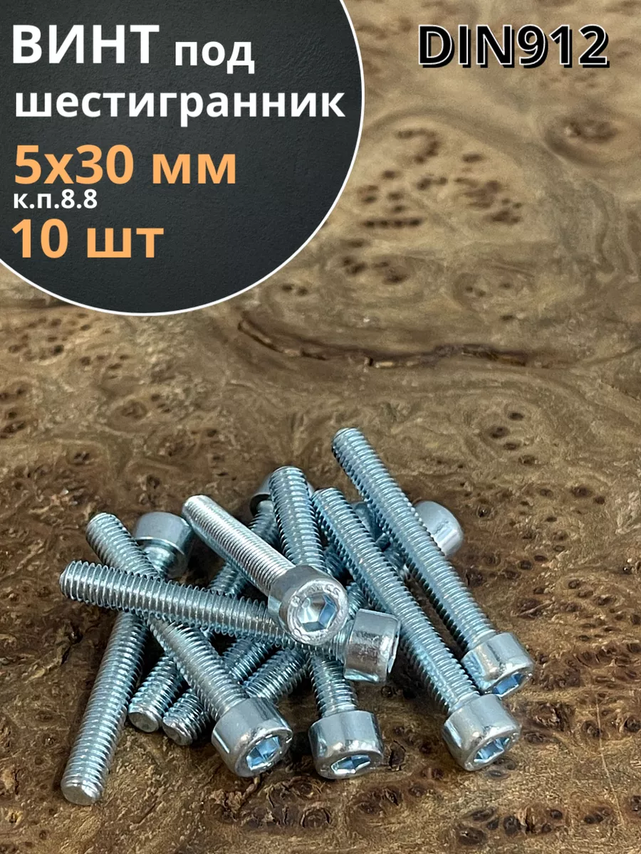 Винт под шестигранник ПР 5х30 мм ОЦ к.п.8.8 DIN912, 10 шт.