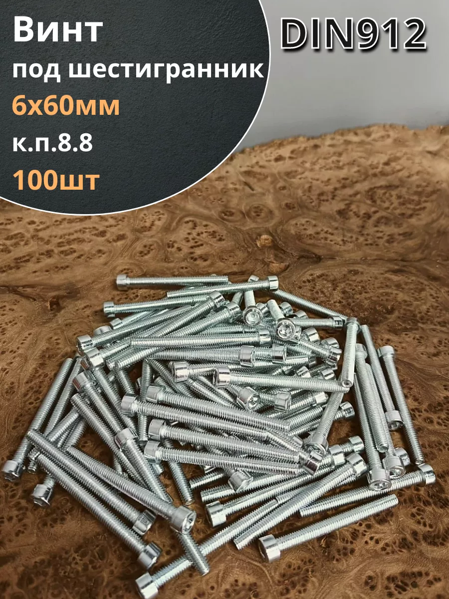 Винт под шестигранник ПР 6х60 мм ОЦ к.п.8.8 DIN912, 100шт.