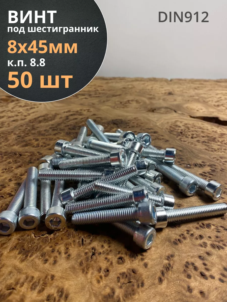 | Винт под шестигранник ПР 8х45 мм ОЦ к.п.8.8 DIN912, 100 шт. | 11402 | 1 шт. |