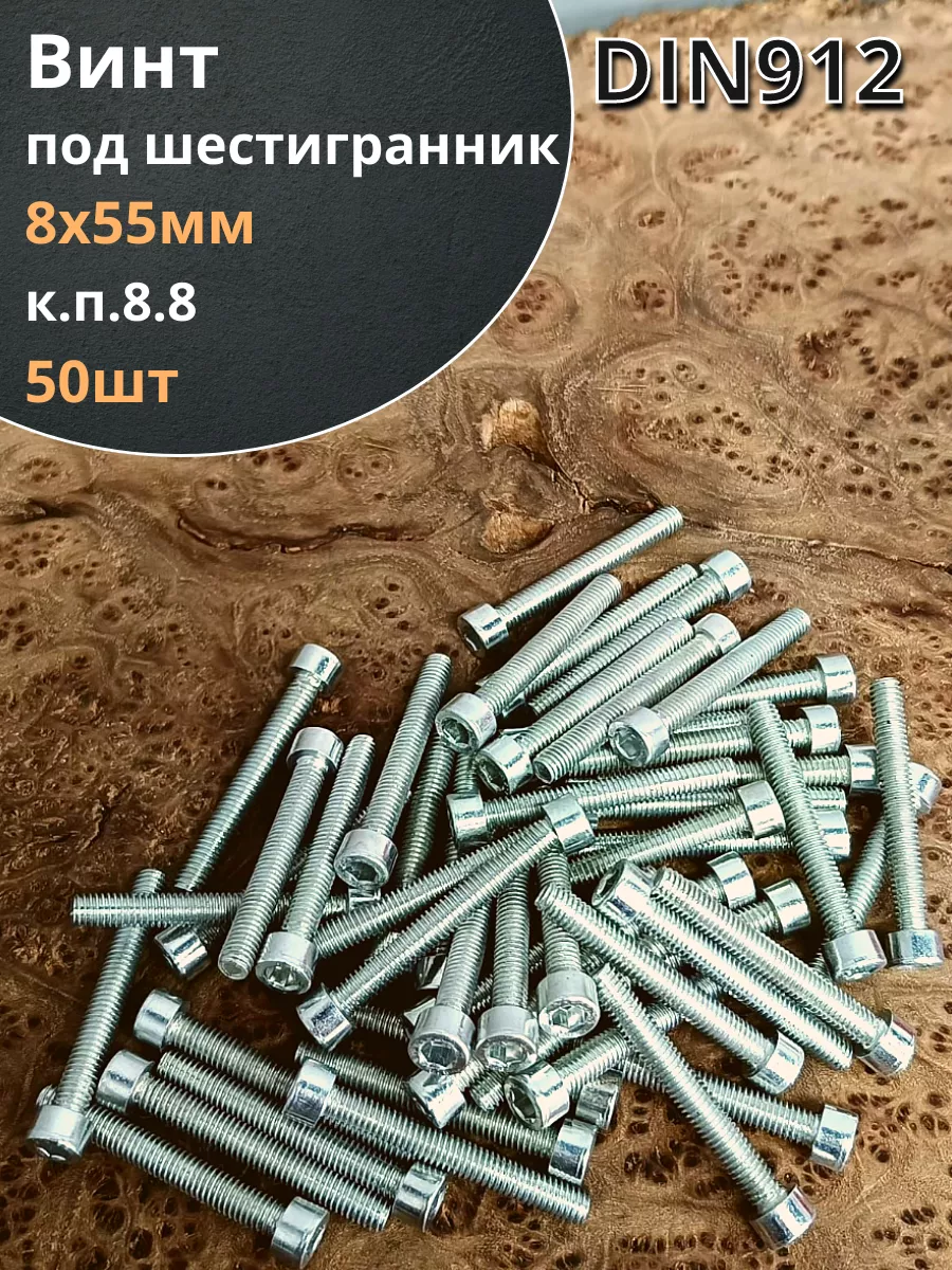 Винт под шестигранник ПР 8х55 мм ОЦ к.п.8.8 DIN912, 50 шт.