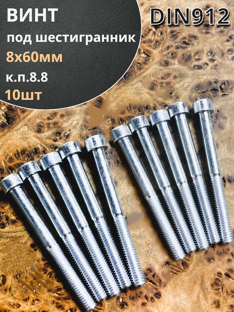 Винт под шестигранник ПР 8х60 мм ОЦ к.п.8.8 DIN912, 10шт.