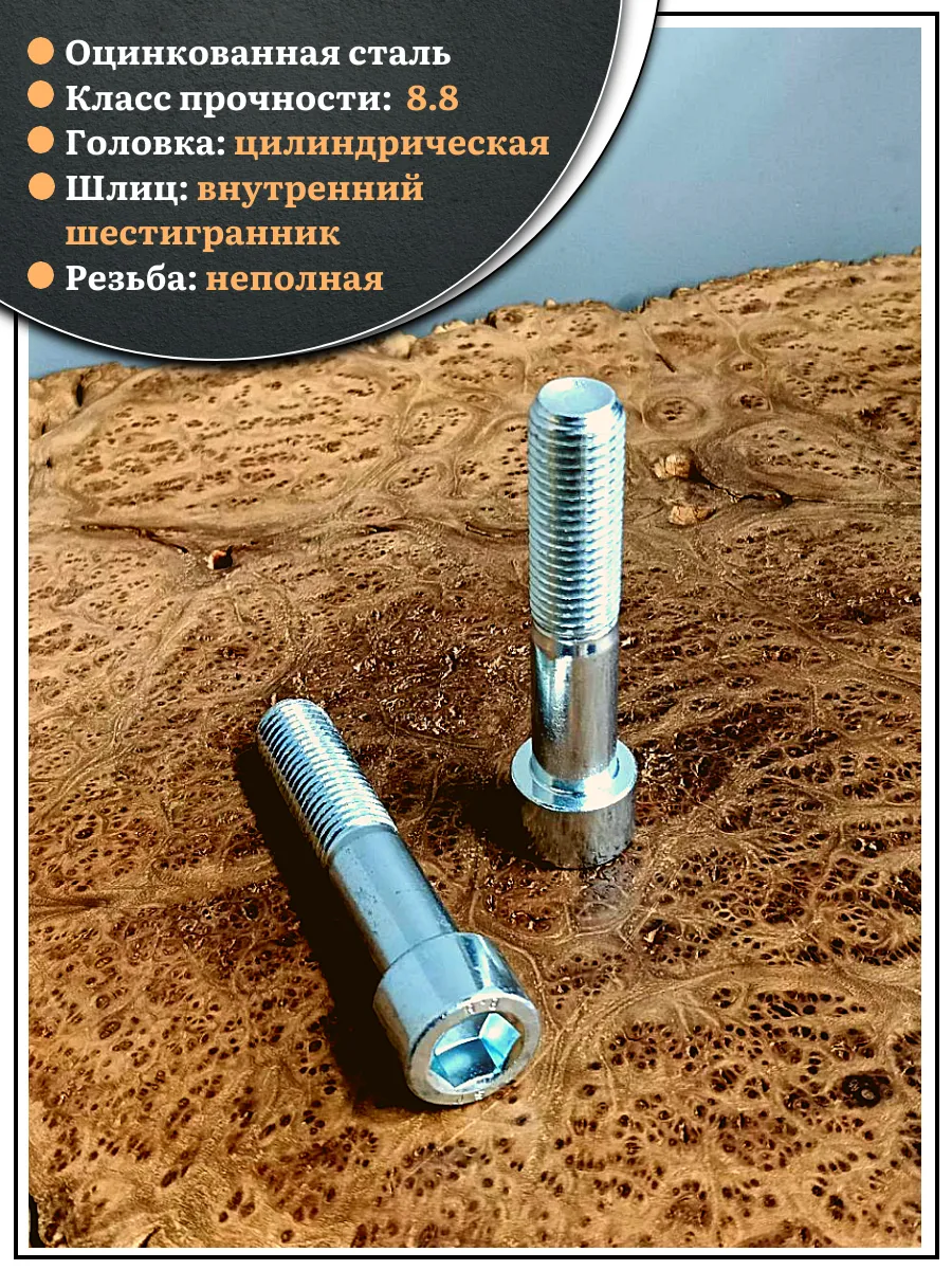 Винт DIN 912 представляет собой металлический стержень с метрической резьбой и головкой цилиндрической формы. Изготовляется из разных материалов, в зависимости от области его применения: сталь 8.8,10.9 или 12,9, сталь с оцинкованным покрытием, нержавеющая сталь А2- А5, латунь, пластик. Прочность на разрыв стали подобного класса достаточно высока, поэтому DIN 912 применяют в конструкциях, которые подвержены серьезным нагрузкам. Применяется винт DIN 912 для специфических нужд (соединения различных элементов металлоконструкций совместно с гайками, шайбами соответствующих размеров) в приборостроении, машиностроении, строительных и иных производственно-промышленных отраслях.