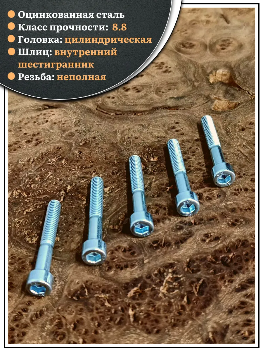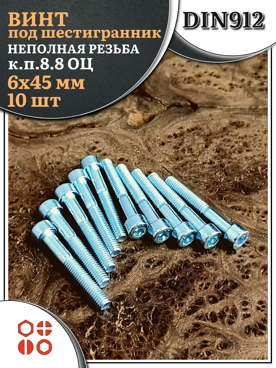 Винт под шестигранник НР 6х45 мм ОЦ к.п.8.8 DIN912, 10 шт.