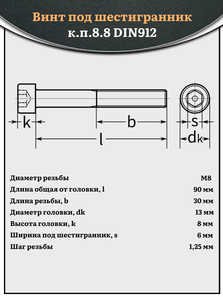 Винт под шестигранник НР 8х90 мм ОЦ к.п.8.8 DIN912, 10 шт.