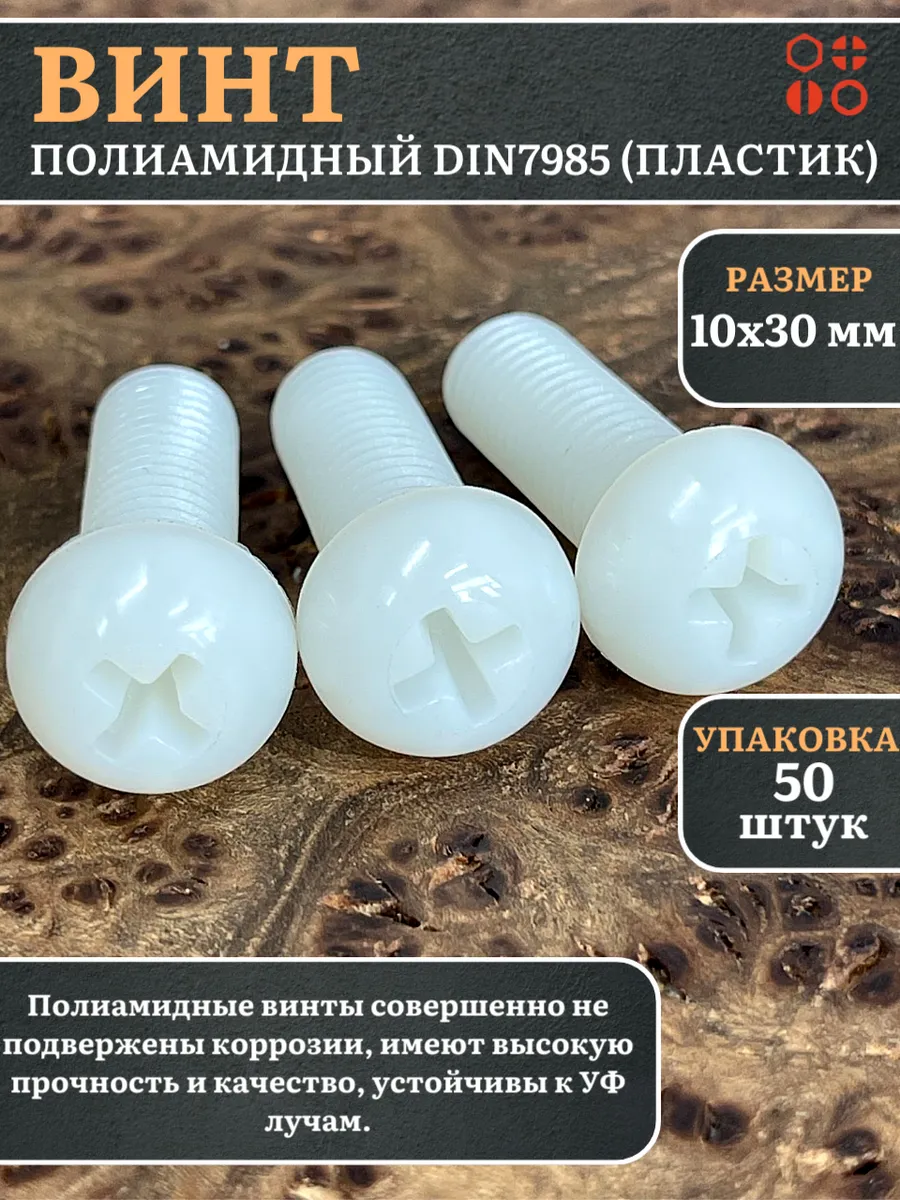 Винт полиамидный 10х30 мм DIN7985 (пластик), 50 шт.