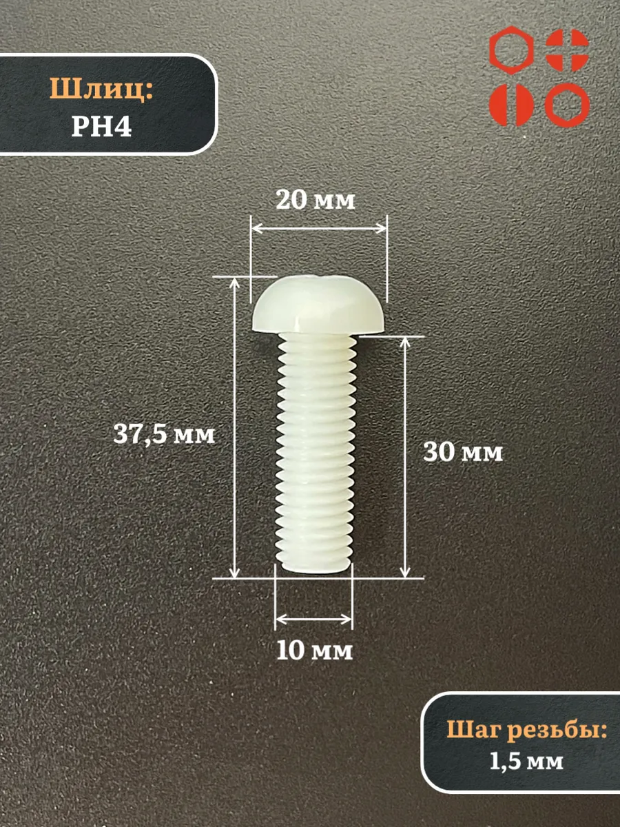 | Винт полиамидный 10х30 мм DIN7985 (пластик), 4 шт. | вп10307985ф4 | 1 шт. |